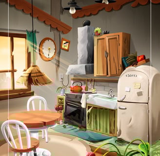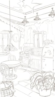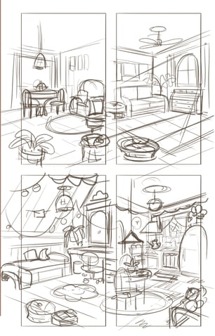 For the pencil sketches and final art, I use Photoshop. I really like this tool; it's amazing for 2D rendering. I love creating atmosphere through colors, lighting, and textures. Everything is done on separate layers.